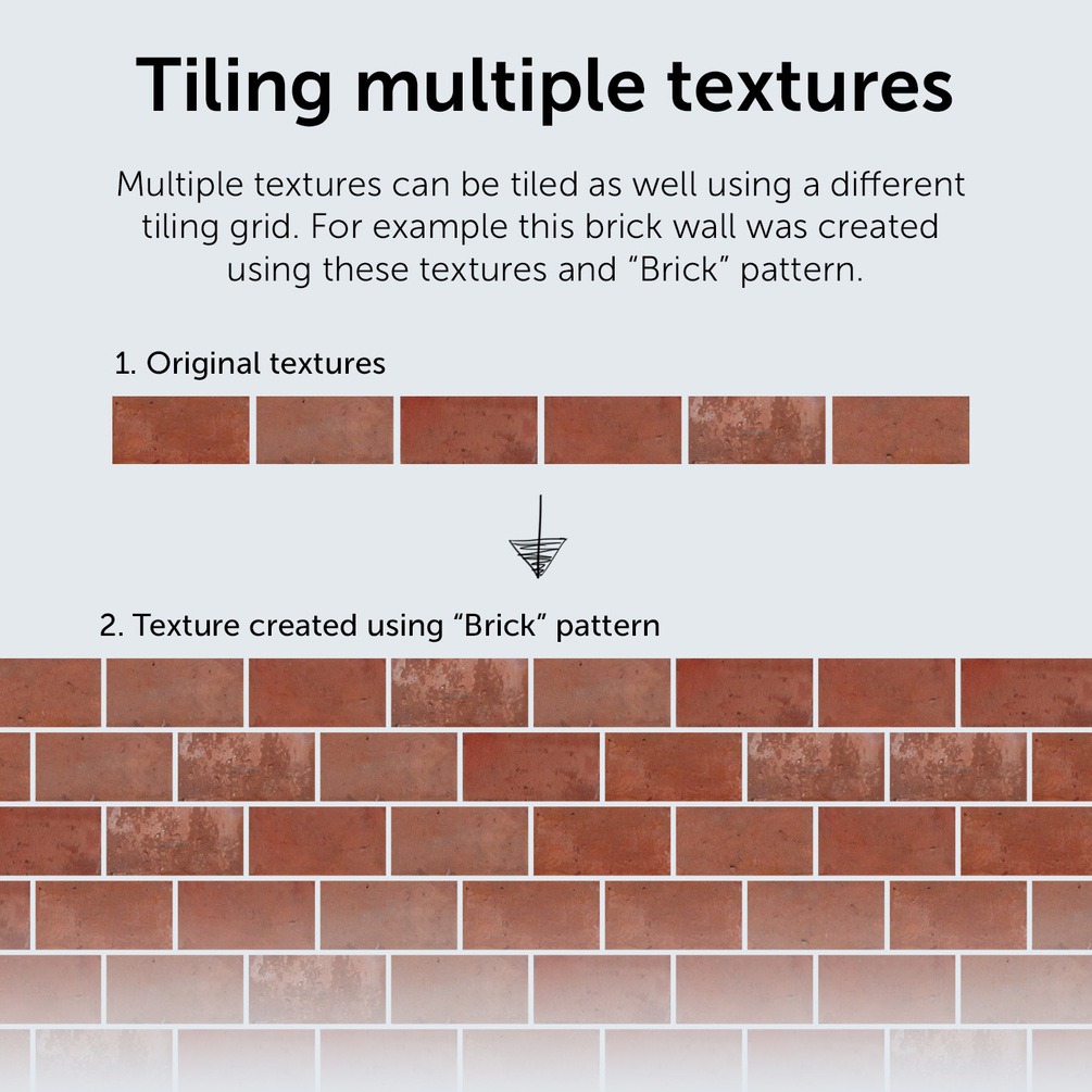 - Create brick walls, wooden floors, ceramic tiles, pavement, etc.