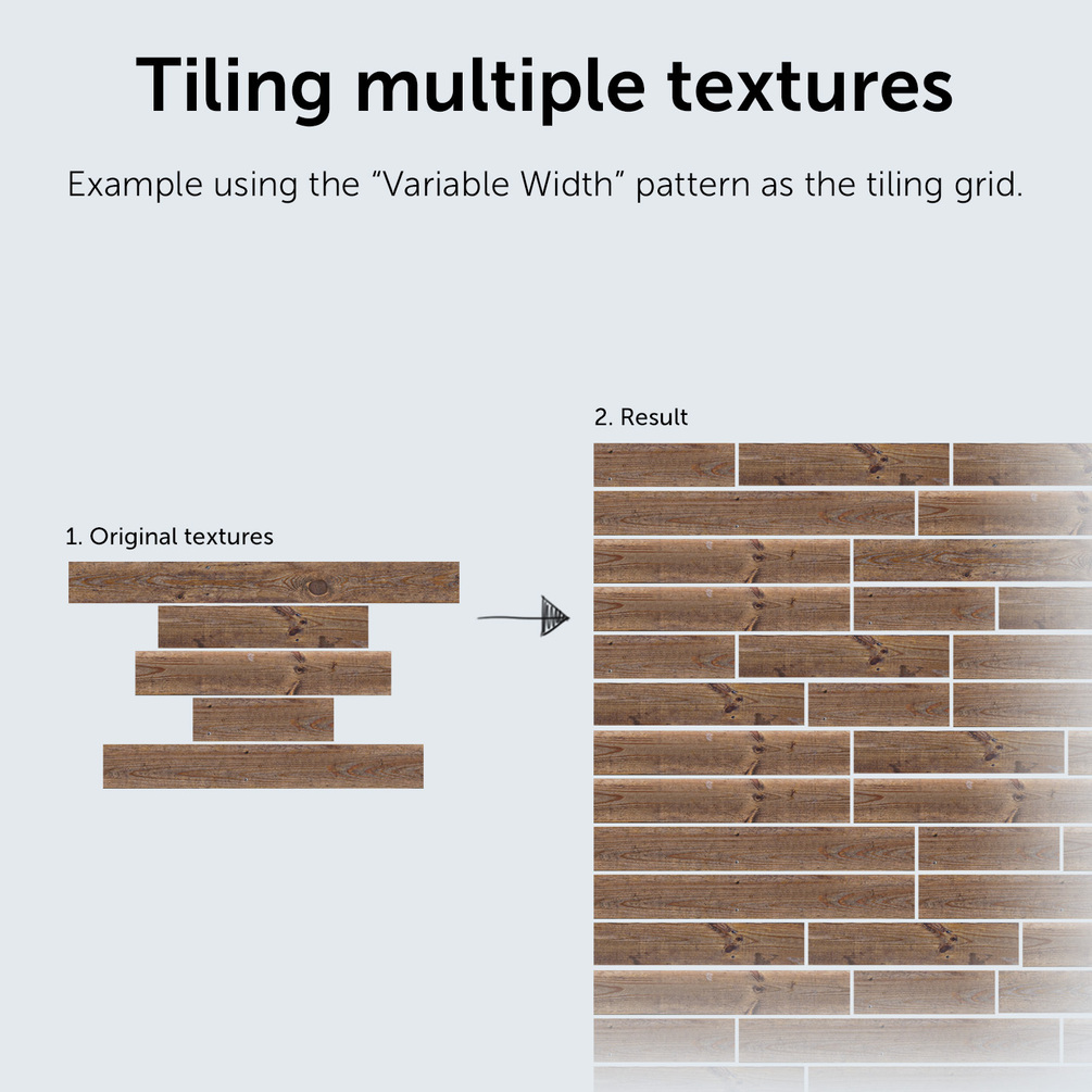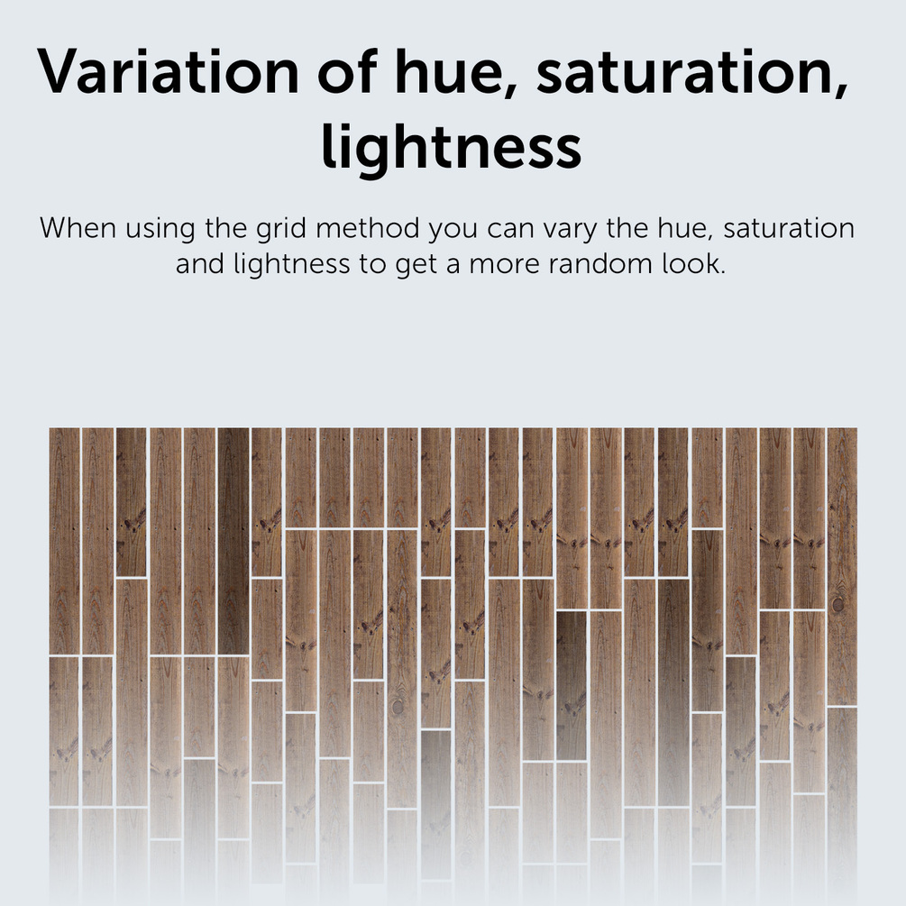 - Texture Variation: can be achieved by randomizing hue, saturation, and lightness of the selected layers or when using a Grid tiling method.