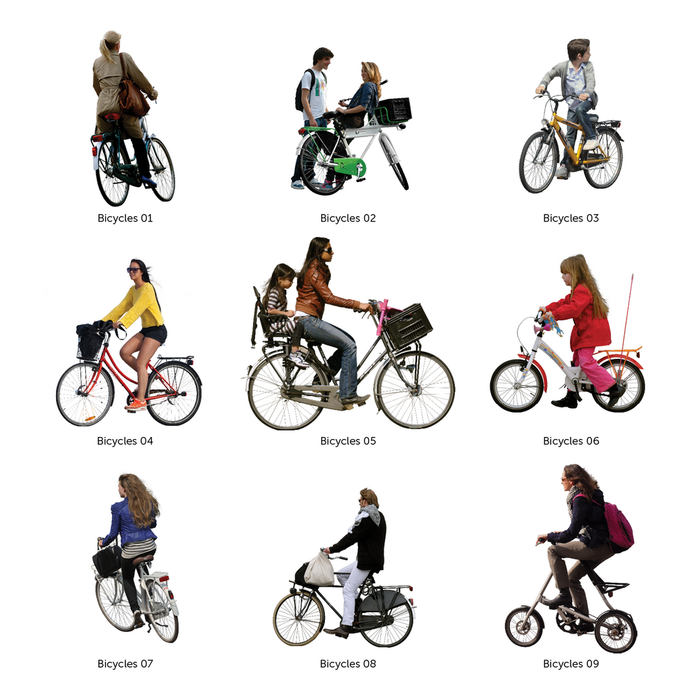 This collection of cutout bicycles is very precisely cut by hand and perfect to use in architectural visualization projects.